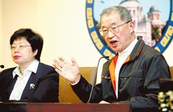 台湾“监察院弹劾审查会”3日审查“监察委员”提案之公务机要费相关涉案人员之弹劾案,决议对马永成、林德训、陈镇慧、卓荣泰、冯瑞麟等5人之弹劾案。“监察院长”王建煊(右)、“监察委员”沈美真(左)在记者会上对媒体说明。图片来源:台湾《中国时报》