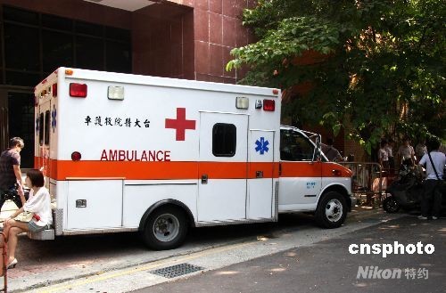 台北地方法院19日继续审理“国务机要费案”,传喚陈水扁夫人吴淑珍到案。考虑到吴的身体状況,法院除在第八及第六法庭放置医疗设备外,医护人員及救护车也随时待命。但吴淑珍一直未出现。图为19日早停放在台北地方法院侧门的台大医院救护车。 中新社发 陈立宇 摄