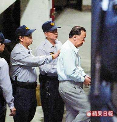 台前“调查局长”叶盛茂4日被判十年徒刑,且未获交保;叶盛茂到庭聆判后,又被戴上手铐押回看守所。(图片来源:台湾《苹果日报》)