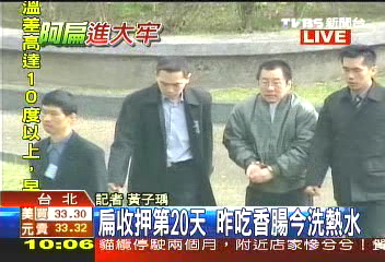 中新网12月1日电 综合台湾媒体报道,台检方特侦组今天提讯邱义仁;理了平头的邱义仁在镜头前首度曝光,在法警、特侦组人员押解下离开台北看守所。
