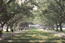 东海的校园规划,得力于知名建筑师的设计。沿着约农路进入校园,一路夹道的凤凰木逸态横生;笔直的文理大道上,古榕覆盖如伞,宛如绿色隧道;而低置的路灯,散发着柔和灯光,入夜之后更添风情。依缓坡建筑的学院系所,多为红砖灰瓦的合院建筑,回廊曲折,花树掩映,颇具古典韵味。