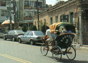 地址: 庙前路86号 电话: (07)372-4991 天后宫为高雄地区最古老的寺庙,草创于清康熙30年(1691年),历经数次修缮而成今貌。其平面格局属两殿两护室,工字型的布局为古时宫衙的建筑典型,廊詹下的花冈石花鸟堵极具古拙美感,木扇门上充满细腻的历史人物及麒麟雕刻;廊中还有一口光绪年间的铸钟及一对光绪18年(1892年)的木楹联,散发出悠悠古风。 三轮车 三轮车在台湾岛上早已全面绝迹,但在旗津则成为招徕观光客的一大特色。游客可搭三轮车到特定景点,或循观光动线漫游;耳听店家吆喝、眼看人来人往、观赏海岸公园的盎然绿意,这种独特的游览方式,为旗津独具的魅力之一。