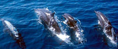 花东离岸5、6海浬的外海,是黑潮与近岸流的交界处,两流相激,把海底的有机物质翻起,吸引了鱼儿成群觅食,自然成了鲸豚最常出没的海域。 对花莲海域的探勘调查,发现全世界已知的80几种鲸鱼种类中,花莲海域就可找到其中四分之一的踪迹,包括抹香鲸、虎鲸、小虎鲸、伪虎鲸、长须鲸、座头鲸、啄鲸、费氏海豚、花纹海豚、热带斑海豚、飞旋海豚、瓶鼻海豚等20多种,鲸豚出没机会相当高,为东海岸珍贵的生态资源。 目前在花东地区,已有多处地点提供海上赏鲸的活动;花莲市的花莲港、丰滨乡的石梯港,以及台东县成功镇的成功港、台东市的富冈渔港,都有赏鲸船搭载游客出海追寻鲸豚的踪迹。其中石梯港的“海鲸号”首开风气之先,当地鲸豚的发现率也最高;花莲港起步虽稍晚,但因占地利之便,从赏鲸船上可浏览海岸山脉及清水断崖,风光相当迷人,其中“多罗满”号更与长期从事东部海域研究的黑潮海洋文教基金会合作,由基金会提供深入的解说。台东方面,成功港一带渔场丰富,除赏鲸外,每逢4~6月飞鱼过境,更有机会亲睹旗鱼、鬼头刀追逐飞鱼的画面。 作为海中的大型哺乳动物,鲸豚出现的景象常常撼人心弦:弗氏海豚结队在海上打出的壮观浪花,飞旋海豚跳出海面翻转起舞,虎鲸(杀人鲸)家族成群回游……;尤其许多海豚看到船只并不闪避,甚至会近距离保持在船前方,尽情翻腾跳跃,好似在与观众同乐。一趟赏鲸活动约3—4小时,包含了约20分钟的行前说明;而实地出海时,船长或船上解说员也会详尽介绍鲸豚的习性,以及各种海洋知识。海豚不分季节,发现机率接近百分之百,至于大型鲸鱼,因属回游性动物,受季节限制,一般来说并不容易见到,但若有机缘一睹抹香鲸或虎鲸巡弋的风采,绝对教人摒息难忘。