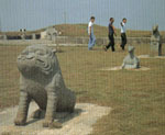 王得禄墓王得禄墓位于新港乡安和村番婆附近的广漠田园上。墓园始建于清道光24年(1844年),占地广达1.3公顷,墓身长87.5公尺,宽43.4公尺,规模宏大雄伟,为一省之冠。王得禄系今嘉义县太保市人,生于乾隆35年(1770年),因平定林爽文之乱与海盗蔡牵有功,累升至浙江提督,诏加太子少保衔;道光21年(1841年)鸦片战争后,奉令驻防澎湖,12月病逝,享年72岁,死后追赠伯爵,加太子太师衔。 墓园座落在青翠的平缓草坡上,墓碑因年久失修而新拓,为三块石板合组而成,中央部分顶端呈弧形,碑楣雕有相向二龙;左右硖石,两端垂直,表面周围带线,中刻藤蔓纹,碑垫墓棹,正面雕花,后筑墓岸,墓手两侧的宝城石柱依次立有石龙、石凤、石狮及石象;墓埕外,左右各有文武将石雕,接着依序为石马、石羊与石虎任其护卫,每座石雕惟妙惟肖,雕法古朴,为台湾石雕史上之精品。目前王得禄墓已被列为一级古迹。