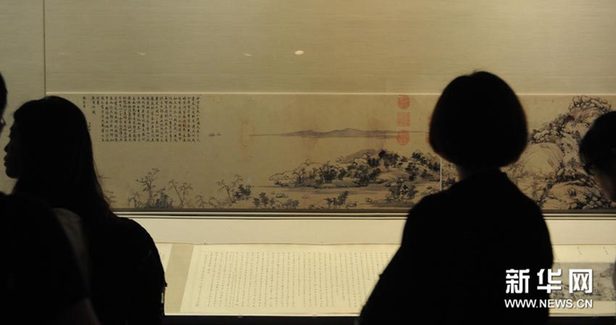 6月1日,观众在参观《富春山居图》。当日,“山水合璧——黄公望与《富春山居图》特展”开幕式在台北故宫博物院举行。分藏海峡两岸的《富春山居图》系元代著名画家黄公望所作,清初被焚为两断,分别称为《剩山图》和《无用师卷》。这件书画珍品360年后首次“合璧”展出成为两岸关注热点。新华社记者 韩传号 摄