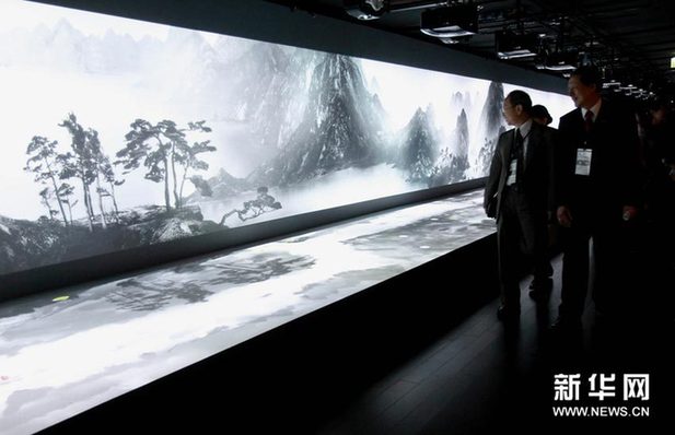 6月1日,观众在参观通过多媒体技术“合璧”后的《富春山居图》。当日,“山水合璧——黄公望与《富春山居图》特展”开幕式在台北故宫博物院举行。分藏海峡两岸的《富春山居图》系元代著名画家黄公望所作,清初被焚为两断,分别称为《剩山图》和《无用师卷》。这件书画珍品360年后首次“合璧”展出成为两岸关注热点。新华社记者 李明放 摄