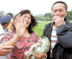 一位被救出的小林部落妇女,见到等候许久的亲人痛哭不已。图片来源:台湾《中国时报》