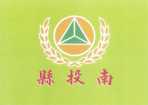 南投县县徽 一、县徽图案为金黄色的圆形,表示南投县以和建县,一团和气,并寓遍地黄金之意。 二、圆圈中三个绿色三角形,代表南投县到处青山翠谷峰峦重迭,森林密布。 三、三个三角形的中心点,代表南投县是全省的地理中心。 县徽画法 一、用圆规画一正圆形。 二、在正圆内画一正三角形。 三、由正三角形每一顶角至圆心各画出一条直线即成为三个等边三角行。 设计者:刘裕猷 绘图者:江延洽 南投县县旗