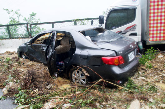 台风“鲇鱼”所带来的强风豪雨致苏花公路严重塌方,不少车辆遭崩落的土石砸毁 图片来源:台湾《联合报》