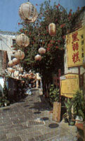 早在清乾隆年间,中央街即发展成澎湖极具规模的商业街,各式店铺、商家、杂货店林立,形成当时妈宫城“七街一市”的繁荣景象。所谓的七街,大部分涵盖在今日的中央里,一市则指妈祖宫(即天后宫)前的鱼市、菜市,昔时人潮来往,喝声鼎沸,一派热闹富足。从天后宫旁进入中央街一巷,两旁的旧宅是光复后荣民所搭建,为闽式建筑整修加盖,朴拙的外貌已显得有些凌乱,但短短的巷道内,却蕴藏着几处人文足迹,名列为三级古迹的万军井、施公祠都在这里。步行至巷底,往左至四眼井的街道即为中央街;往右至水仙宫的街道,则是当年繁荣的七街之一。漫步于老街,屋舍斑驳的身影,衬以几株苍挺老树,别有一份绵绵旧情。中央街上的屋舍曾经是灸手可热的金店面,而在商机衰竭的今日,只能从仅存的几家古早式糕饼店、中药行、杂货店、旅社,一窥当年繁荣盛景。