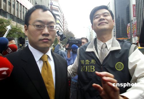 一月十日,轰动台湾的力霸集团金融弊案有新进展。当天检调机构出动大批检调人员,对力霸总部、中华商业银行、王又曾等人住处进行大搜查,同时约谈力霸集团核心决策人员。图为力霸事件主角王又曾的儿子、中华银行副总经理王令侨被调查人员带走协助调查。中新社发张炜摄