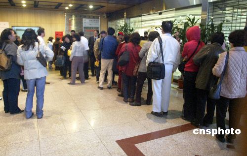 一月八日,众多储户来到台北的“中华商业银行”营业部取款。因力霸和嘉食化两家公司申请重整,引发“中华商业银行”发生严重挤兑事件。台湾“金管会”已宣布接管“中华商业银行”,政府提供近四百亿台币现金应付。中新社发 张炜 摄