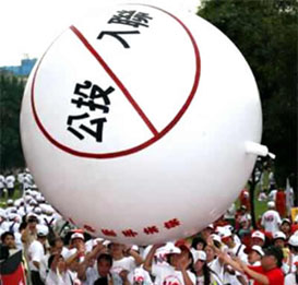 不满蓝绿阵营分别举办游行,推动入联返联“公投”案,“反公投入联”行动联盟15日举行“反公投入联活动”,群众推举反对“公投入联”气球( 来源:“中央社”)
