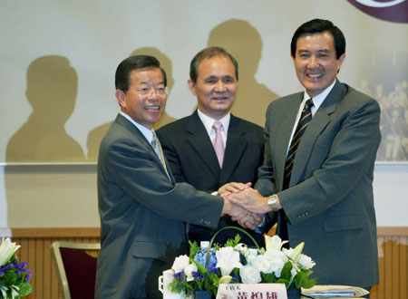 中新网7月9日电 马英九与谢长廷今天同台参加蒋渭水文化基金会举办的“历史与政治的对话”座谈会,虽然不是辩论会,但两人还是针对所谓“外来政权”等议题展开隔空交锋。