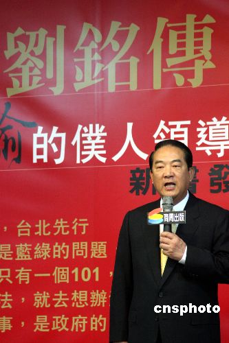 资料图:2006年10月17日下午,亲民党主席宋楚瑜借新书《宁为刘铭传——宋楚瑜的仆人领导哲学》发表之机,宣布参选台北市长。 中新社发 黄少华 摄