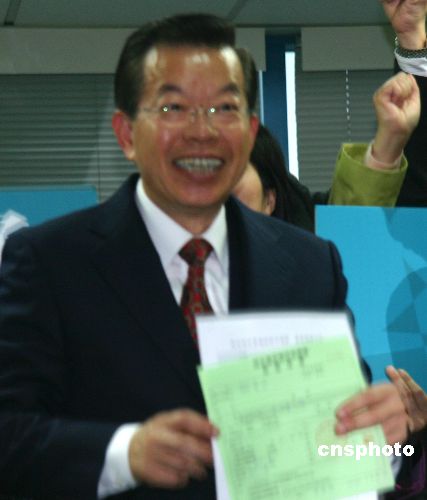 三月八日上午十时,谢长廷在民进党中央党部登记参加民进党内2008年“大选”人选初选。中新社发 黄耀辉 摄