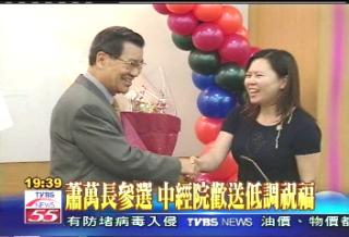 据报道,对于萧万长投入2008年选战,在岛内被称为全台湾地区级“智库”的台“中华经济研究院”的员工昨天为萧万长举办了欢送茶会,茶会座无虚席,但献上的祝福很低调,选了菩萨琉璃当告别礼物。台湾“中经院”员工代表致辞时说:“由衷感谢,祝福董事长明年选举顺利,带台湾走向更美好的未来。”