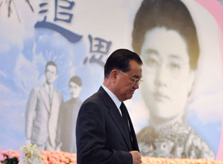 | 国民党荣誉主席连战母亲赵兰坤女士过世,已于日前下葬。连家今天(28日)上午举行追思会,包括马英九、萧万长、吴伯雄、亲民党主席宋楚瑜及新党主席郁慕明在内的蓝营重量级人士出席了追思会。连战在会中宣读追念母亲的文章时难掩激动情绪,不但语带哽咽,而且不时拭泪。