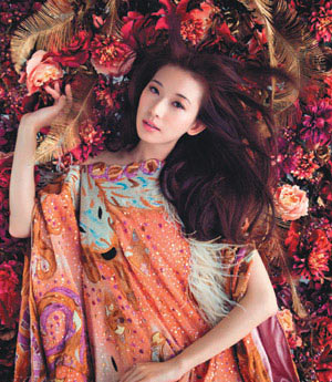 林志玲的拍摄成果宛如和风美女从花画中走出,十分优雅,她觉得摄影师蜷川实花的眼睛像是一个放大镜,让女性最灿烂的那个时刻,在瞬间被保留下来。