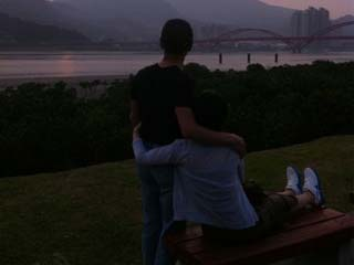 Selina和任爸到关渡看夕阳。图片来自Selina微博