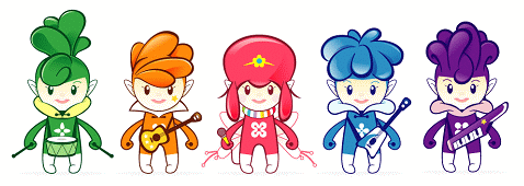 花博吉祥物家族除“芽比”外,还有5位花精灵,包括绿色的百合花精灵“百儿”、红色的蝴蝶兰精灵“兰儿”、紫色的郁金香精灵“小郁”、蓝色的绣球花精灵“小球”,以及黄色的向日葵精灵“小葵”。