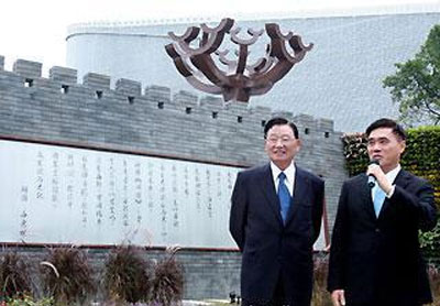 海基会董事长江丙坤一行人在台北市长郝龙斌陪同下参访花博的上海庭园及西安庭园。 图片来源:台湾“今日新闻网”