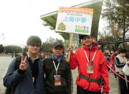 获赠台北花博门票的上海市800名高中生,25日起陆续到台北花卉博览会参观。上海中学生潘若喆(右一)说,逛花博感觉很舒适。 图片来源:“中央社”