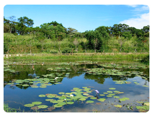 农场主人:张树芬 地 址:台北县石门乡阿里磅82-1号 联络电话:02-2638-2745 营业时间:周一至周日8:00~18:00 营业项目:生态解说、昆虫及原生动植物观察 园区特色:目前园区内生物相当丰富,尤其青蛙、蝉、萤火虫、蝴蝶和水生动植物等复育非常成功。农场内有湿地生态系、溪流生态系、开旷草原生态系、池塘(湖泊)生态系、森林生态系、农田生态系等六大生态类型,孕育了极多样活泼的动植物,非常适合生态教学活动。 交通指引:开车经淡金公路到石门乡,经过石门初中,下一个红绿灯右转,过消防队左转,走北21道路,沿途有指标,约四公里即可到达。