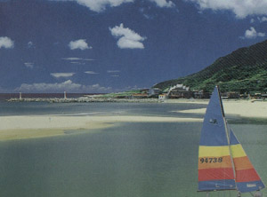<%beginrecord%><%endrecord%> 福隆海水浴场位于台北县贡寮乡三貂湾的双溪河口,是一座天然港湾式的浅滩浴场,长久以来,即以优美的沙滩和多样化的水上活动而富盛名,早已是东北海岸最热门的消暑去处。1997年夏季海水浴场由台凤公司承接经营,并命名为“蔚蓝海岸”,期望成为与垦丁南北呼应的台湾蔚蓝海岸;除增辟各项硬体设施外,更引进各式各样的新潮水上活动,提升住宿餐饮品质,使单纯的海水浴场,一变而为崭新的海滨渡假胜地。 全区广达40公顷,包括水上及陆上两大部分。长长的沙嘴将水上活动区域分成内外两区,以横跨双溪的跨海大桥联系,沙嘴以内风平浪静,适合游泳戏水,沙嘴以外则为各种水上活动的乐园,轻松悠闲如香蕉艇、橡皮艇,刺激新潮如拖曳伞、风帆船、冲浪,让人体验刺激的凉夏;若团体事先预约,还可安排古老的牵罟活动。陆上则规划有两处大型烤肉露营区,并设有完善的服务中心。 乘车风向标