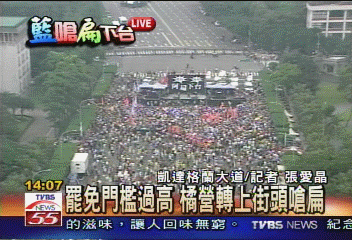 中国台湾网6月3日消息 据台媒报道,亲民党所发动的“全民呛扁,阿扁下台”活动,目前已经正式豋场。现在有相当多的民众涌入凯达格兰大道,亲民党主席宋楚瑜亲自到场参加。