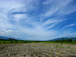 花东纵谷,是台湾东部纵谷地形景观,夹于中央山脉和海岸山脉之间,由菲律宾海板块与欧亚大陆板块所挤压形成,因横跨花莲、台东两县而得名,且位置为台湾本岛东部而亦称东台纵谷,在日据时代也被称为中仙道平野或中仙道。花东纵谷南北长约180公里,东西宽2―7公里,面积约1000平方公里,海拔50-250公尺不等。纵谷的地形以冲积平原为主,不少台地夹杂于其中,主要河流有花莲溪、木瓜溪、寿丰溪、万里溪、光复溪、马太鞍溪、秀姑峦溪、新武吕溪、卑南溪等,共同塑造出纵谷内的主要地景。