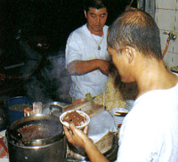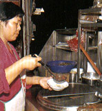 苏天助素食面地址:宝桑路195号电话:(089)323-672营业时间:1700~2400店内特色:干面、汤面、米糕 为台东市最著名的素食小吃,以材料道地、汤味十足著称。除了一般的面筋、麻酱之外,还加了米浆作调味,而且为让口感更加细致,这些酱料都经过繁复的煎炒手续,香喷喷却丝毫不带油腥味;配上特选的面条,不论干拌或下汤,都令人回味。这里的米糕也是一绝,以“咸草”编成的篮子作蒸笼,阻隔了蒸气的直接蒸润,煮出来的糯米又Q又香,再淋上上述的酱料,就成了风味独特的米糕。此外,店里常备有竹笋汤,让喜欢干面或米糕的食客搭配着吃,清淡而爽口。