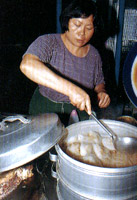 台南虾仁肉丸地址:光明路69-1号电话:(089)328-307营业时间:1700~2400休息时间:周四、周日店内特色:清蒸肉圆黄莲登肉圆正式店名为“台南虾仁肉丸”而当地人惯以“台东肉圆”称之。其粿皮采地瓜粉加在来米制成,因多了米香,故吃起来的口感较像粿,味浓而扎实。清蒸式的做法,使肉圆不油不腻,无论干吃或湿食皆相宜,干吃为淋上甜稠的独门酱汁,再洒上芹末,更添香味;湿食则是招牌吃法,肉圆加入预先熬煮多时的大骨汤头,汤鲜肉美,味道一绝。