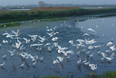 3.“国家”级湿地——盐水溪口湿地 位于台南市盐水溪出海口,面积635公顷,由盐水溪、嘉南大排流出的淡水在河口和海水相会,形成适合植物及贝类生长的环境,如盐沼水虻和台湾花瓣蛤,也是大白鹭及中白鹭的重要繁殖巢区。