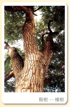 樟树原产亚州热带,分布于长江以南各省,在台湾北部海拔1200公尺,南部海拔1800公尺以下的山地及平地,常绿木乔木,全体有芳香,干皮纵向深沟裂,叶互生,革质,卵形或椭图形,先端锐形,微凸头,平滑无毛,三出脉,至脉腋下有腺点,叶面波动,花为腋生圆锥花序,绿白色浆果形球,未熟时绿色,成熟时呈紫黑色,果可引诱鸟类。树冠大,自然展伸,呈波状圆形,每年二月间换叶,新芽鲜绿美观,叶全年茂盛,即能遮荫纳凉,又能吸收灰尘及噪音。需光中庸,幼曲好半荫,成木好阳,对有害气体抗害力强,可适应都市的行道树,年数久了,树态雄壮威武,届老龄,更有古道老树的景色。