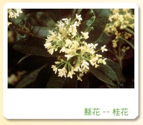 桂花原产中国西南部,现全台各处多有栽培,常绿灌木或小乔木,叶椭圆形或长椭圆状披针形,长5-10公分,革质,全缘,最幼时有锯齿,背有网脉,先端尖或渐尖,基部楔形,花白色(变种橙黄或黄白色)香气扑鼻,萼4分裂,花冠分裂被达于基部,裂片长椭圆形,核果长约1公分,蓝色,木材灰白色,质密坚韧,可制各种小形用具。本种栽培供观赏,花用作菜种或食品香料,据云桂花久服之,有化痰生津之效。