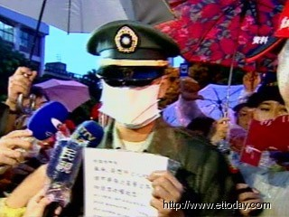 据报道,台湾泰北中学少校教官董华正曾经身穿军服、戴墨镜与口罩现身“倒扁”静坐现场,他曾说“如有战争,弟兄们必定枪口向内”,因此被台当局“军法机关”依“煽惑现役军人暴动罪嫌”收押,成为岛内第一位遭到收押的“倒扁”人士。