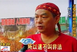 林正杰20日首度站上“倒扁”静坐舞台,他向在场在民众喊话,“你们忍无可忍的时候,我就把我的生命交给各位,一起冲,好不好?”