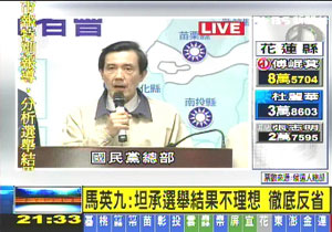 马英九称选举结果对国民党是个警讯