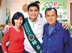 邱名璋(中)力拼连任屏东县议员,父亲邱茂男(右)、姐姐邱议莹(左)是最大靠山。 图片来源:台湾《中国时报》