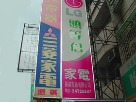 振棋电器有限公司位于向上路一段,是一家有口皆碑的老店,专营进口家电及冷气空调销售维修,非常擅长冷气安装工程。该店经销歌林、三菱、LG等各大品牌家电,有平面数字电视、伴唱音响、数字机上盒、液晶显示器、硅液晶显示器、DVD数字倍频光驱、PDP电浆显示器、LG奈米滚筒洗衣机、LG奈米对开冰箱等多种家电用品。