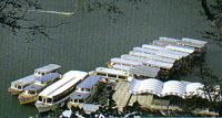 石门水库位于桃园县东南,拦截大汉溪中游溪水,在群山环抱间形成广阔的深潭,水库最为人津津乐道的莫过于优美的湖光山色,兼有壮阔的水利工程,亦有清新可人的小品风光,无论是游湖、赏枫、赏鸟、登山健行、漫步小憩,都可畅怀尽兴,早已成为都市人逃离尘嚣最佳去处。 水库因溪水出口处有石门山、溪洲山双峰对峙,状如石门而得名。灌溉区域涵盖台北县新庄以南至新竹以北的广大地区,并提供防洪、饮水、发电等功能。 水库四周湖光山色、风景秀丽,为一处湖泊游憩胜景。坝顶区为水库观光的中心,立于其上,水库宽广的湖面、大汉溪河阶景观及迤逦的桃园台地,尽收眼底;游客亦可自停车场下方码头乘船游湖,由湖心欣赏山水风光,或搭船至对岸的童话世界、上游的龙珠湾、阿姆坪游玩,水量丰沛时还可达复兴乡的溪口台地。 大坝为水库最雄伟的景观,坝高133公尺,为岛内最大的土石坝,溢洪道为鞍部泻槽式,有弧形闸门6座,最大溢洪量每秒11400立方公尺,每逢大雨,总吸引游人至此欣赏泄洪的壮丽景观;溢洪道下方还设有发电厂、石门大圳等。大坝四周遍植枫、槭、梅、樱、樟树等林木,一片绿意,为石门水库妆点出多采多姿的四季风情。 自大坝沿着环湖公路往上游而行,一路上绿荫笼罩,山青水绿的景致总令人流连忘返;所经之处皆为林相完整的水土保安林。浓密的树木为鸟儿提供了绝佳的庇护及丰盛的食物,不啻为欣赏低海拔山鸟的宝库。穿越大坝,对岸则有石门胜景碑、依山阁、梅园、枫林步道等景点,其中枫林步道两旁栽植多达3000余棵树龄超过30年的青枫纯林,步道下方另有槭林公园,冬季时青枫的火红与枫香的金黄相映成趣,为北台湾低海拔赏枫胜地。 枫林步道 大坝与高线收费站间的山坡,为高大整齐的青枫纯林,每年冬季时枫红片片惹火,是北部最佳的低海拔赏枫胜地。枫林里,步道纵横,漫步其间享受新鲜的空气,深受健行者喜爱。 童话世界 童话世界位于大坝对岸,须搭乘环湖游艇方可抵达;园区以童年梦幻世界为设计主轴,其中横跨湖面的鹊桥吊桥,及散布园区各处的景观台,为尽揽水库风光的最佳据点。 大坝·八角亭 站在大坝上方,只见两侧山壁夹峙,辽阔的桃园台地与青绿的水库风光,各具风情;大坝旁设有观景台,为俯瞰溢洪道和大坝主体的最佳角度。八角亭立于大坝旁的小丘上,海拔270公尺,视野极佳,可居高临下俯瞰大汉溪谷、桃园台地及石门水库大半风光。 码头·环湖游艇 乘船游湖向来是水库的招牌活动,只要搭上游艇,即可投身湖心,化为湖光山色中的一景,在约40分钟的游程中,金岛鹊桥、仙岛岬角、大湾坪与环湖公路风光尽入眼中;此外,还可分抵童话世界(金岛)、阿姆坪、溪口台地等地,是畅游水库风景区最悠闲雅致的交通工具。 乘车风向标: 由大溪搭往石门水库的桃园客运,或由中坜搭往石门水库的桃园或新竹客运,于终点站下车即抵大坝。 补给小站: 风景区食宿兼备,石门活鱼名闻遐迩。 特别提示: 1、石门发电厂开放给40人以下的团体于非假日参观,惟须事先预约。 2、游艇无固定开船时刻及航线,达15人以上即开船。 |