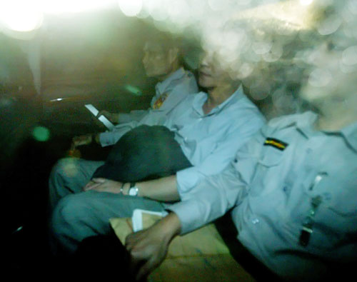 台湾特侦组侦办“国务机要费案”及陈水扁家庭疑洗钱案,七日传唤扁妻吴淑珍胞兄吴景茂(中)到案。讯后,以涉嫌违反“洗钱防制法”且有串证、串供之虞,移送台北地方法院,审理后裁定羁押禁见。“中央社”图