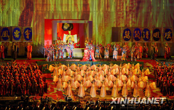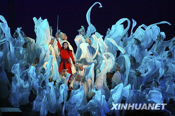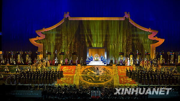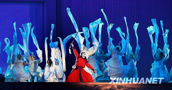 歌剧《图兰朵》剧照(2009年10月6日摄)。当日,由张艺谋导演的歌剧《图兰朵》在北京国家体育场“鸟巢”上演。新华社记者 侯俊 摄