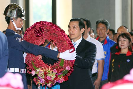 孙中山诞辰144周年 马英九向孙中山像献花致敬