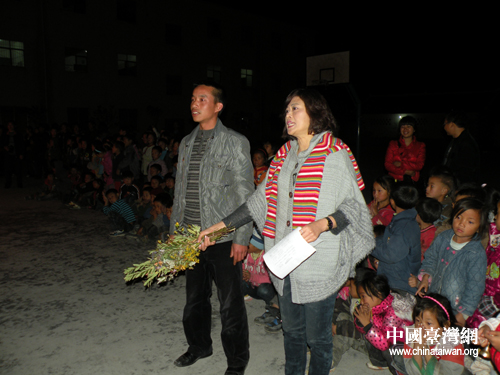 张平宜和大营盘学校的罗校长共同主持欢庆彝族年篝火晚会(图片来源:四川省台办)