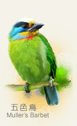 五色鸟,有人称之为花和尚,因颜色鲜艳,其鸣声甚似和尚敲打木鱼咯咯作响,客家人则称它叫啄树鸟,五色鸟平日隐栖于中低海拔森林顶端,夜晚则栖于自己挖啄的朽木洞中,嗜食各种种子。