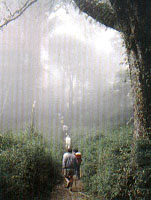 观雾森林游乐区是跨新竹县五峰乡及苗栗县泰安乡两境,目前已划入雪霸公园管辖,为公园西北园区重要的游憩景点,海拔约2000公尺,终日云雾腾漫,正是“观云赏雾”的好地方,“观雾”之名由此而来。园区由数条步道串连而成,包括八仙瀑布、柳杉树海、桧山神木、观雾瀑布和榛山瀑布等主要景观,为攀登大霸尖山必经之地,并以大鹿林道及南清公路(122县道)对外联络,为观云海、赏生态、看神木的最佳去处。 园区以观雾山庄为中心,大鹿林道东西线、观雾瀑布步道、榛山步道、乐山林道、桧木巨木林道等步道串连各景点;观雾山庄展望极佳,于此眺望,大霸尖山、小霸尖山、品田、雪山等名峰一一可指。 园区内森林生态相当丰富完整,虽大部分面积皆为人工造林地所覆盖,但林下衍生出的次生植被却是气象万千,加上此处特有的原生植物,以及刻意栽种的观赏植物等,使得观雾的四季呈现出不同的美。如春天的山樱、牡丹、森氏杜鹃;夏季的凤仙花、黄菀、八仙花;秋冬时台湾檫树的金黄和枫的火红,都是观雾精采难得的景致。 除了美还有奇,沿着桧山巨木森林步道,可见棣慕华凤仙花以及黄花凤仙花,两者由于族群数稀少,已列为台湾稀有及亟待保护的植物;而位于大鹿林道的马达拉溪谷则有全台最大的台湾檫树自然保护区,面积广达23.5公顷,檫树及以其为食的宽尾凤蝶,均是稀有珍贵的国宝。 大鹿林道为观雾联外的主要道路,沿途景致秀丽,其中八仙瀑布垂挂于大鹿林道8公里处的山际中,青纱白练,风景如画,林道21公里处之后的树海是人工柳杉造林地,树龄已将近30年,雄伟壮观。行径此处,每当水气氤氲,壮阔的云海便在脚下铺陈,因此每次的山回路转,总是带来不少惊喜。 桧山神木为观雾最具看头的景点,座落在鹿场大山海拔2300公尺的东延棱线上。桧山神木共有5株,均为珍贵的老红桧,茂密繁盛,欣欣向荣,令人不禁要赞赏大自然奇特的生命力。 观雾森林游乐区另有两条步道系统,一条可通往气势磅礴的观雾瀑布,全程约1.5公里,尽头为一座凉亭,于此可远观瀑布,瀑布高约30公尺,壮阔的水势,每每将瀑底淘空,而形成一深水潭,附近因为岩壁松动,因此禁止游客前往。另一条则可抵海拔2489公尺的榛山山顶,此为欣赏日出云海的极佳据点,并可远眺大霸尖山及雪山群峰,途中还可顺访榛山瀑布。 乘车风向标: 无公车直达,可由新竹市或竹东包车上山,详洽大宇(03)532-1703、世豪游览公司(037)478-233。 注意事项: 观雾属山地经常管制区,前往时须携带身份证于当地办理入山登记。 |