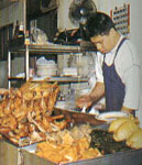300年悠久的历史,除为新竹古城留下精彩的文物、古迹外,闽、客及平埔族人于此所融汇的生活智慧与民俗习性,也发展出各式极具地方特色的风味小吃,更造就新竹不坠的美食盛名。  客家与闽人都是出了名的勤俭,因此,对不作兴排场、吃大餐的新竹人而言,经济实惠的小吃,道地熟悉的家乡味,反倒成了平日犒赏自己的最佳美味。新竹人懂得吃、讲究吃,尤其偏好传统饮食;米粉、贡丸、肉圆是新竹三大招牌,上至达官贵人,下至贩夫走卒,鲜少不是这三味的爱好者,而打着这三支旗帜在当地开出名号的小吃店,更是数不胜数。 和许多地方以庙口为小吃发展源头的背景相同,位在中山路上的城隍庙,是新竹小吃的大本营,也是闻名全台的小吃重镇,琳琅满目的各项传统小吃,令人目不暇给,是无法作长时间停留游客最佳的选择。此外,在新竹市区内,名人政要常访的“明星店”亦不少,如传承四代的新大同饮食店、老县长常访的好吃面店、高挂“日理万鸭”荣匾的鸭肉许、客家口味的成家肉粽稞粽大王、福州口味的黑猫汤包和石家鱼丸……,更添几道地方美食的光环。 黑猫包 地址:北门街187号 电话:(03)523-3560 营业时间:15点-翌日03点 店内特色:福州包子  黑猫包其实就是福州包子,因为之前的老板娘外号叫“黑猫姐”,卖的包子也跟着被叫“黑猫包”了。黑猫包特别之处在于发面时不用新酵母,而是用前一天留下的老面糟,代代相传的陈年酵母,让面皮更香Q有劲;内馅则用鲜嫩的生瘦肉和去油的熟肥肉,拌上熬煮10小时的肉汁,调味搅匀后先冰冻再包,吃起来汤汁满满,香味四溢。 鸭肉许 地址:北门街185号 电话:(03)525-3290 营业时间:16点半-翌日02点 休息时间:农历每月3、17日 店内特色:鸭肉面、炒鸭血、炒下水 见到鸭肉许店墙上挂着“日理万鸭”木匾,再看用餐时间客满的人潮,就知道绝非浪得虚名。熏鸭配上独家黄瓜泡菜,是鸭肉许的招牌菜色;而每碗面每道菜都是现点现做,尤以蒸鸭原汁作汤底、韭菜花配炒,吃来更鲜脆香甜。北门街54号亦有分店。 新大同饮食店 地址:大同路146号 电话:(03)527-7327 营业时间:08点-16点 店内特色:贡丸切仔面、贡丸筋  传承四代的新大同,手工自制的贡丸配上大骨汤,不加味素就很香甜可口。其招牌贡丸之所以有名,肉鲜是首要条件,其次,取猪的后腿肉去筋精制,再加上做工道地,弹性十足;客人若现场吃不过瘾,还可称斤外卖,而其利用剔下的猪筋做成超大型的贡丸筋,亦十分独特。 石家鱼丸 地址:兴学街29号 电话:(03)524-2965 营业时间:08点-14点 休息时间:农历每月3、17日 店内特色:骨肉鱼丸汤 50年老店的石家鱼丸,没有招牌却门庭若市,香甜的汤味老远就可闻到。老板用新鲜鲨鱼自制的大颗鱼丸,包着猪肉、荸荠做的内馅,配上大猪骨熬的汤头,味道鲜美不油不腻,加上大骨肉,就是最受欢迎的骨肉鱼丸汤。 成家肉粽稞粽大王 地址:中山路97号 电话:(03)522-5900 营业时间:09点-23点 休息时间:不定 店内特色:客家稞粽、肉粽  成家肉粽属于北方粽,即将糯米炒熟后包馅再蒸,其馅料丰富,有香菇、蛋黄、瘦肉、栗子等,制作客家稞粽的方法,是先将糯米磨成米浆作为外皮,再包入馅料蒸熟,吃起来外Q内香。店龄80多年的成家粽店,因馅多、口味独特,知名度颇高,常有名人指定购买,形成另一种特色。