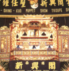 早期台湾许多的迎神庙会场合里,布袋戏是最常看到的民间戏曲表演之一。一座简陋的戏台,几尊能上天入地的戏偶,便使台下的观众看得如痴如醉,一点也不比现在的巨星演唱会逊色,俗话说“做戏憨,看戏狂”,便生动道出昔日布袋戏受欢迎的程度。布袋戏俗称“掌中戏”或“小笼”,相传于明朝时,有位落第秀才,到庙里问得一卜,“功名威赫归掌上,荣华富贵在眼前”,名落孙山后,编写剧文,以布偶演出,没想到大受欢迎,就此发展出现今的布袋戏。布袋戏发源于福建泉州,原本只是“上有木雕小台阁,下垂蓝布”,的简陋舞台,到了清代才发展出精雕细琢的戏台与戏偶,清代以后便已发展成风行民间的剧种。布袋戏于道光、咸丰年间从福建传入台湾,由最初的唐山师傅带来走江湖的笼底戏,演变成热闹喧哗的北管戏,铿锵明快的节奏配上跑马、对打、跳花窗、摆阵等的特技演出,精彩逗趣地走入民间生活。50年代后,布袋戏发生了重大的变革,绚烂华丽的金光戏取代了传统的布袋戏,后场的北管演奏变成了唱片播放,木偶也长大到本来的二倍有余,连原雕刻雅致的戏台彩楼也加上了霓虹灯和干冰等特效,甚至还搬上电视演出,摆脱传统的野台形式,造成相当大的轰动。布袋戏彻底地本土化了,但却也失去了质朴的乡土俚艺本质。至今台湾仍有400多个布袋戏团,云林县占有六分之一,其中有两个重要流派,堪称是台湾布袋戏的重镇。在本土文化寻根热的潮流下,南北各地设立多处的布袋戏文物馆,此外民间成立了多支小学生剧团传扬传统艺术。 |
